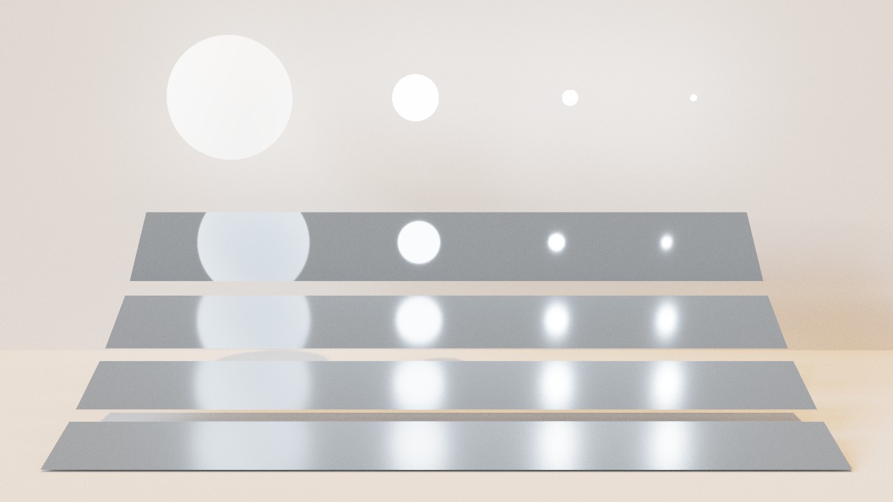 - $|\boldsymbol{n}\cdot \boldsymbol{\omega}_i|$:余弦项,体现入射角度对受光面积的影响;