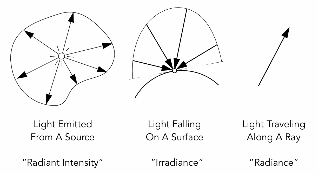 因此,要想让渲染具备物理一致性,就必须建立在光的物理量度之上,而这一套描述和度量光能量的理论体系便是辐射度量学(Radiometry)。